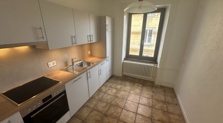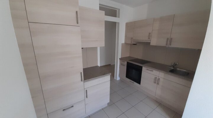 Joli 2,5 pièces avec cheminée, cuisine agencée, salle de bains-W.C. Possibilité de louer un garage. Proche du centre ville.
