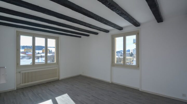 Appartement de 3.5 pièces composé comme suit : – cuisine agencée– 2 chambres à coucher– un séjour– une salle-de-douches/WC– hall d’entrée– réduit