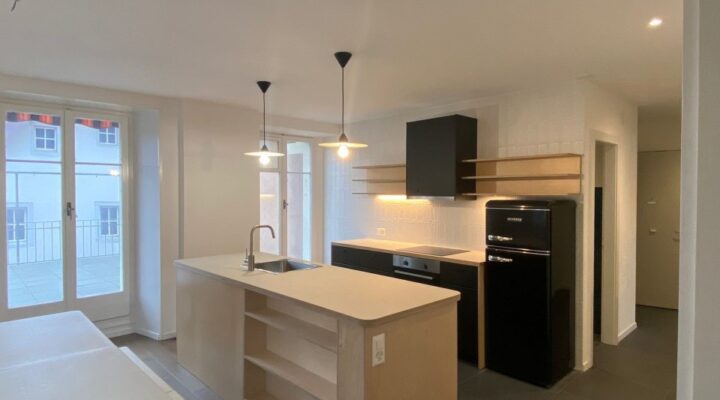 Très bel appartement de 5 pièces en duplex, balcon, situé dans un quartier calme. Ce logement est composé comme suit : – Cuisine agencée ouverte sur le...