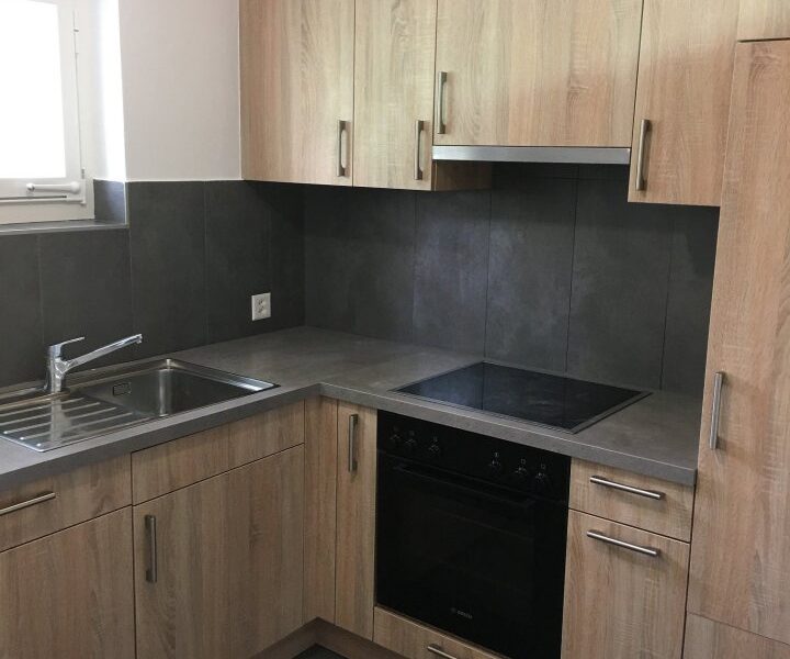Appartement composé d’une cuisine agencée neuve, salon-salle à manger, 3 chambres, vestibule, salle de bain, WC, balcon.