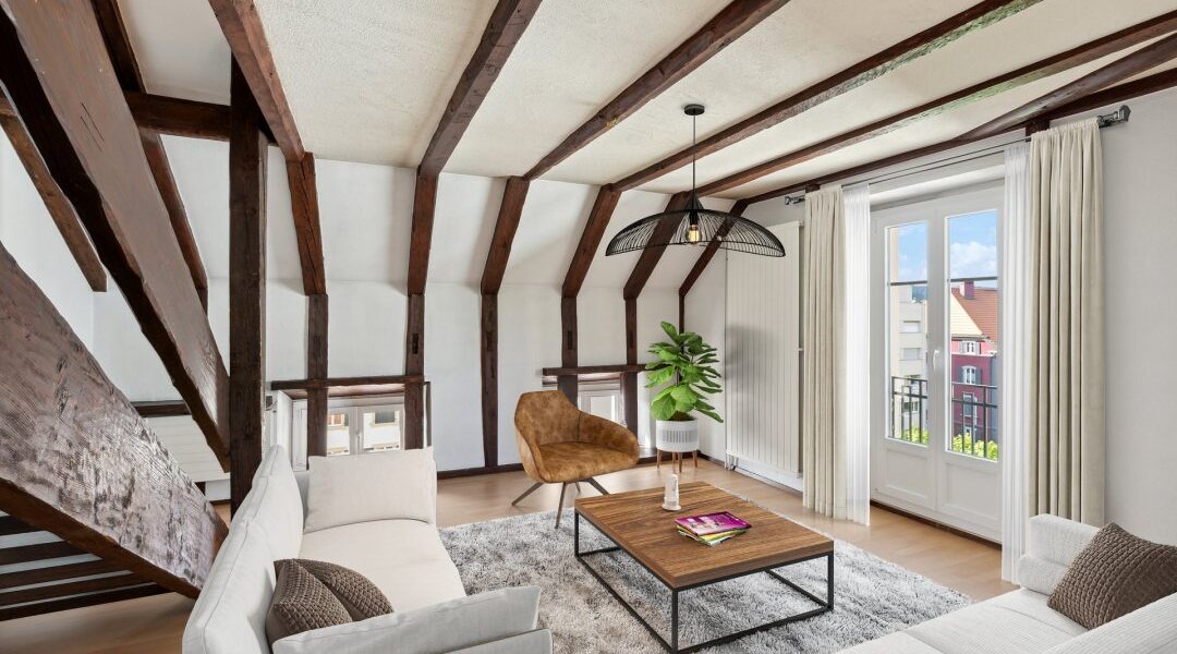 L’appartement bénéficie d’une disposition harmonieuse et d’une ambiance chaleureuse grâce à ses espaces ouverts.