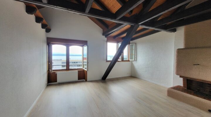Grand appartement de 4 pièces dans les combles avec beaucoup de cachet composé comme suit : – Une cuisine agencée avec lave-vaisselle– séjour– 3 chambres– vestibule– salle...